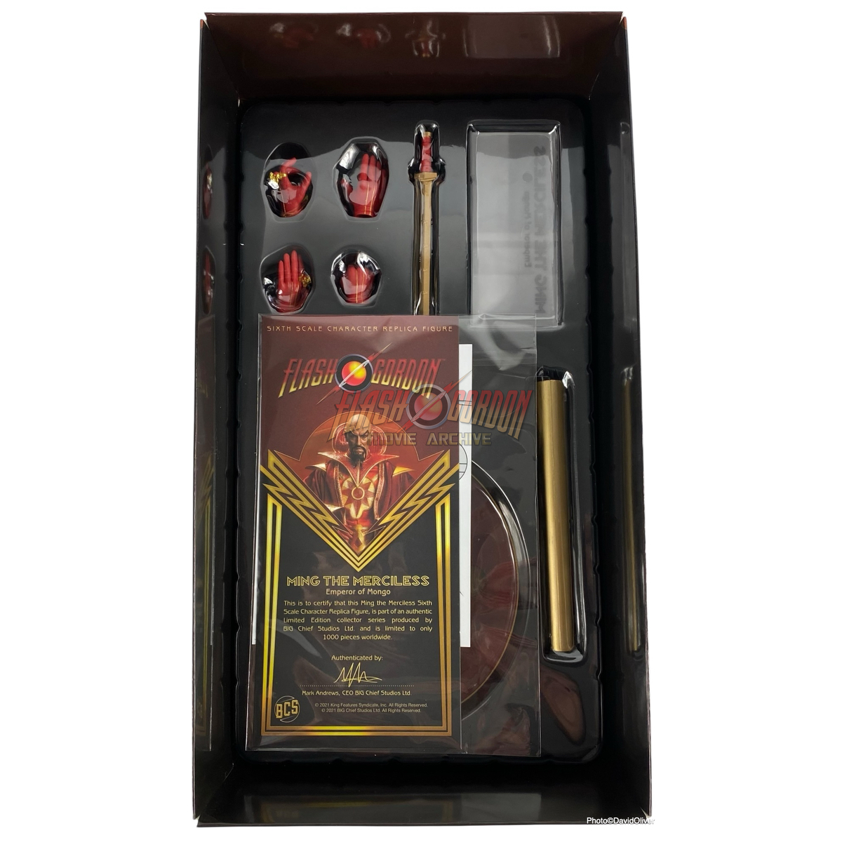 Our friends over at Big Chief Studios kindly donated this product to the FGMA in appreciation of reference and promotion provided for their Flash Gordon product range. FGMA owner, David Oliver, is credited on the product packaging.